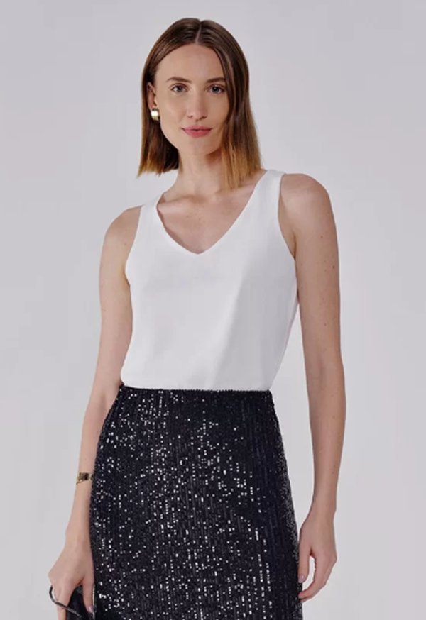 O Vestido Elba possui pences estratégicas, localizadas nas costas, para deixar a peça ainda mais elegante e confortável, seguida de zíper invisível para facilitar o uso. Um detalhe que não pode passar despercebido é o recorte diferenciado, localizado na parte da frente da peça. Uma dica de uso é sobrepor o vestido em camisas sociais, deixando a gola da camisa aparente.