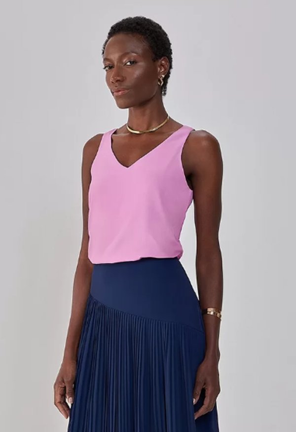 O Vestido Elba possui pences estratégicas, localizadas nas costas, para deixar a peça ainda mais elegante e confortável, seguida de zíper invisível para facilitar o uso. Um detalhe que não pode passar despercebido é o recorte diferenciado, localizado na parte da frente da peça. Uma dica de uso é sobrepor o vestido em camisas sociais, deixando a gola da camisa aparente.